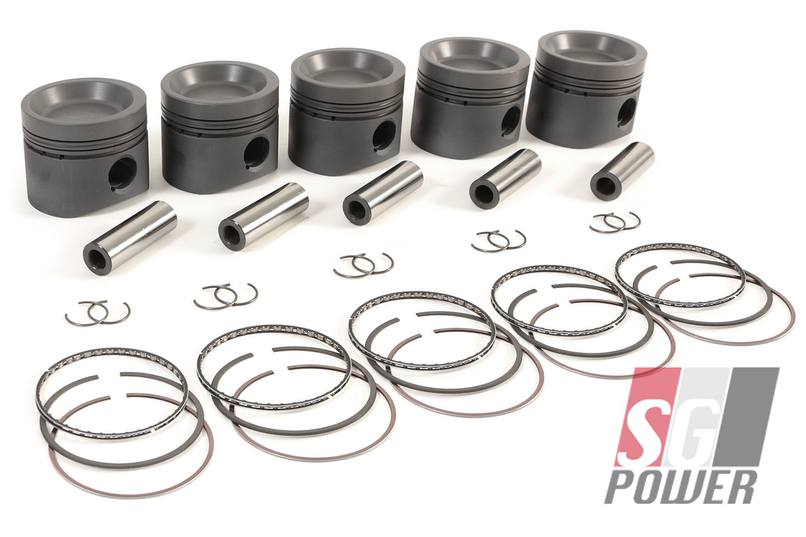 Satz (5 Stück) neue Schmiedekolben für den Audi Urquattro und Audi 200 Typ 43 Turbo. Passend für folgende Motorkennbuchstaben WJ/WS/WK/KJ/WR/GV/WX. Die Kolben sind komplett bestückt mit Kolbenringen, Kolbenbolzen und Clips. Die Kolben sind passend für das erste Bohrungs-Übermaß mit 79,76mm, auf Anfrage können wir auch das zweite Übermaß 80,01mm anfertigen. Original Teilenummern nur zu Vergleichszwecken 035107071F 035107105F 035107065F 035107103F
