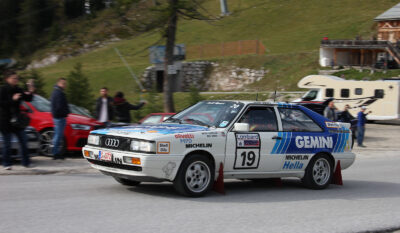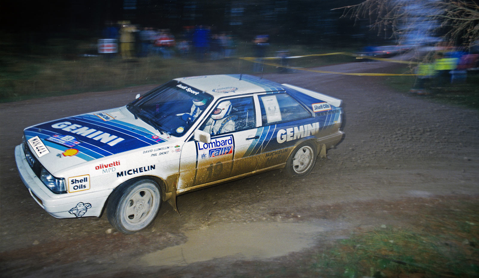 Dieses Fahrzeug ist das zweite der für Audi Sport UK aufgebauten Wettbewerbsfahrzeuge der Gruppe A und entspricht der Homologationsnummer A 5284. Nachdem das erste Fahrzeug fast die gesamte Saison in der Europäischen und der Britischen Rallyemeisterschaft eingesetzt wurde, ist dieses Fahrzeug speziell für den letzten Lauf der Rallyeweltmeisterschaft, der Lombard RAC Rally vom 22. bis 25. November 1987 von David Sutton Motorsport und mit Shell Gemini Lackierung eingesetzt worden.