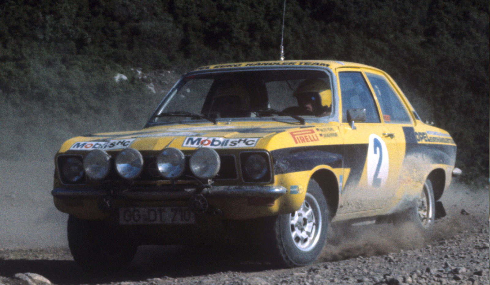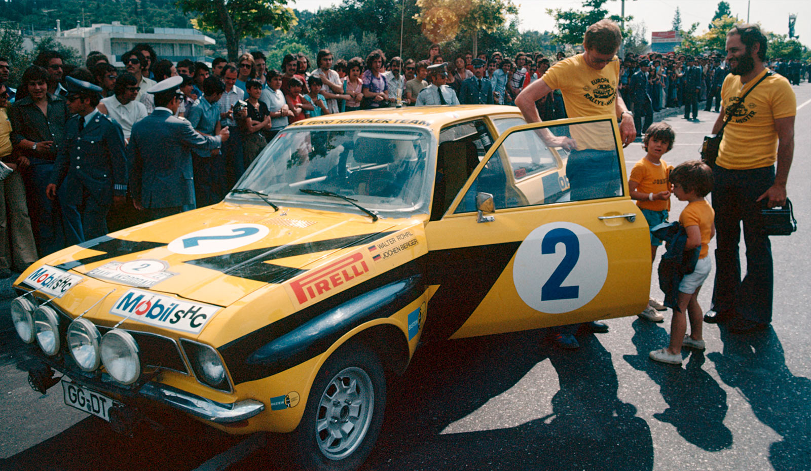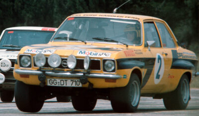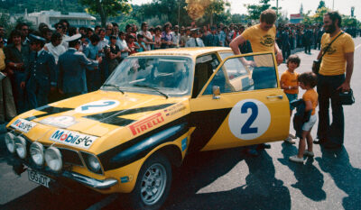 Die Geschichte des Opel Ascona A als Rallyeauto begann in den 70er Jahren des letzten Jahrhunderts. Der Ascona A wurde am 1. April 1971 mit der Homologationsnummer 5398 in der Gruppe 2 homologiert. Dieses Fahrzeug wurde 1975 vom Opel Werksteam in Rüsselsheim gebaut. Zugelassen wurde es mit dem Kennzeichen GG-DT 710 auf die Adam Opel AG. Erste Veranstaltung für das Auto war die Rally Acropolis vom 24. bis 31. Mai 1975 mit Walter Röhrl am Steuer und Beifahrer Jochen Berger und Startnummer 2. Bewerber für die 3 Teams W. Röhrl / J. Berger, R. Aaltonen / C. Billstam und J. Pesmazoglou / D. Georgitsis war das “OPEL Euro Händler Team Elfinco”. Elfinco ist das Akronym der Hellenic Financial Company, die jahrzehntelang der griechische Importeur von Opel war. Opel wiederum hatte in diesen Zeiten den höchsten Marktanteil aller Automobilhersteller in Griechenland. Johnny Pesmazoglou war der Inhaber von Elfinco, regelmäßiger Teilnehmer der Acropolis Rally und Gesamtsieger in den Jahren 1952 und 1955.